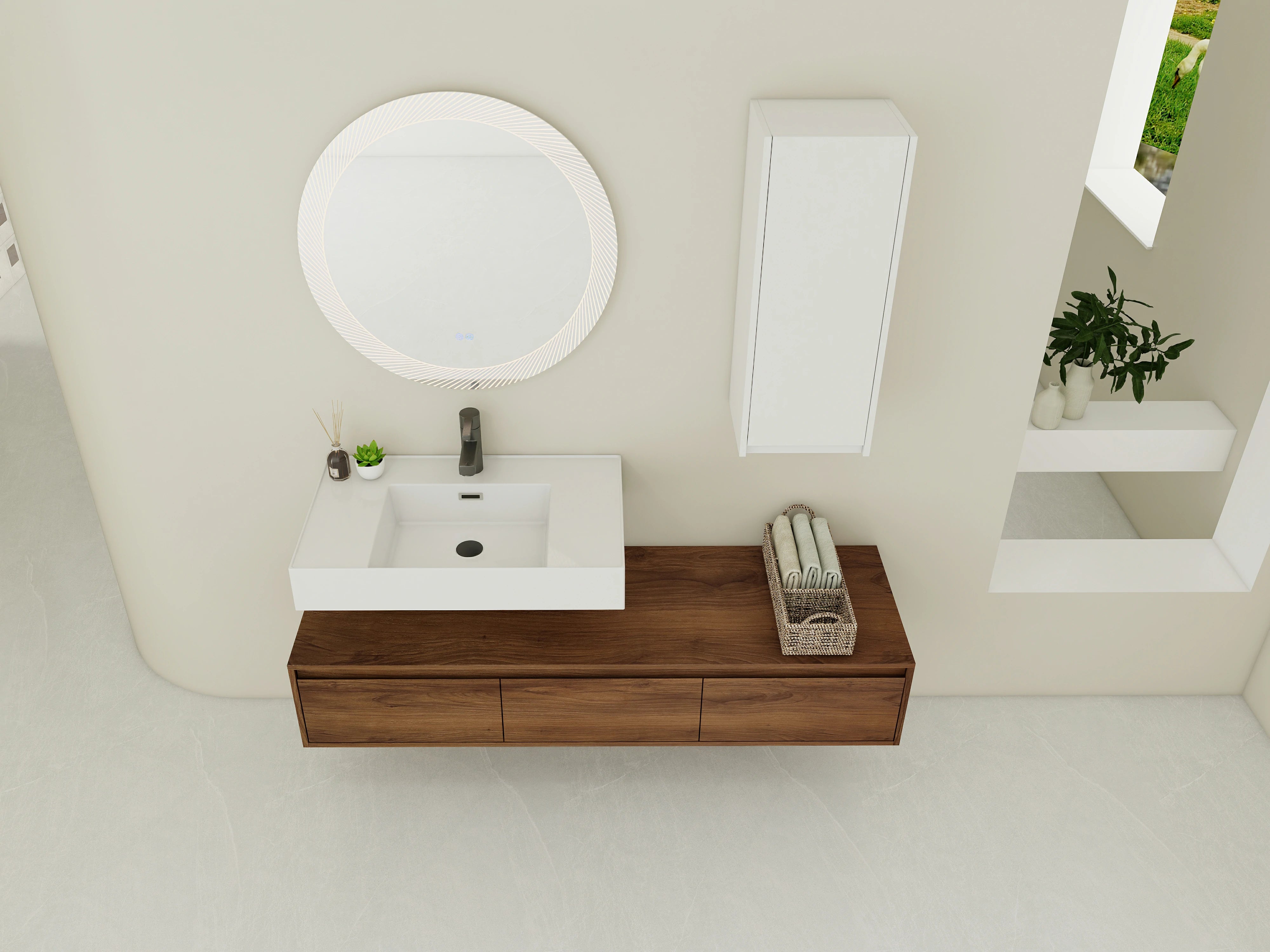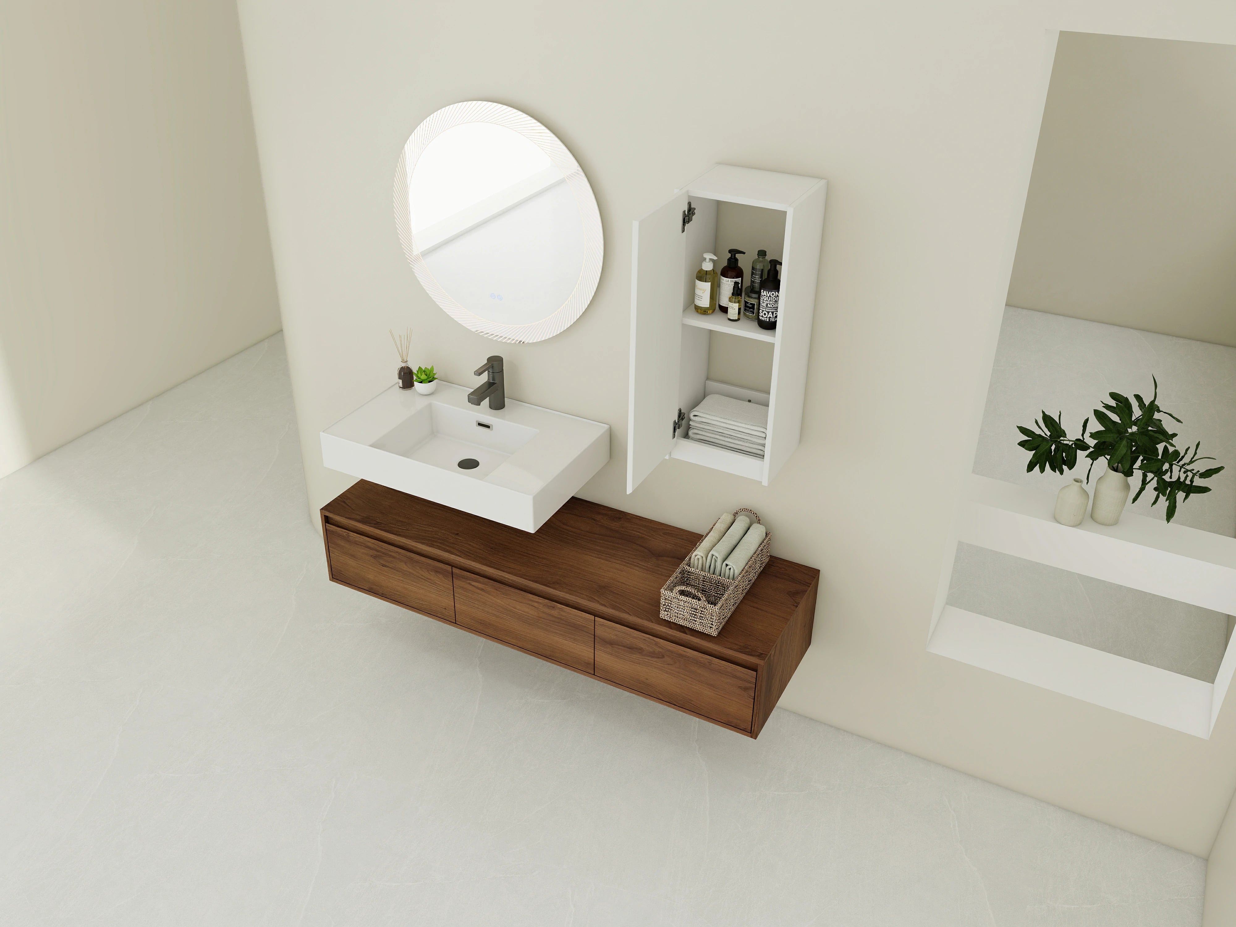 | Package includes: | - 1x Vanity Cabinet;- 1x Resin Sink; - 1x Side Cabinet; Parts Package |